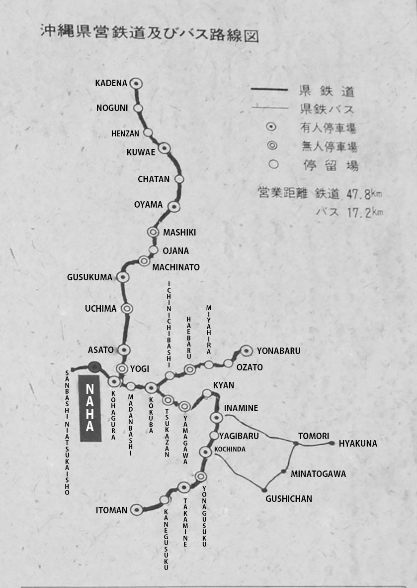 Quem já foi para Okinawa com certeza percebeu que o transporte público deixa a desejar. Muitos também já devem ter pensado sobre como seria bom se em Okinawa houvesse um sistema ferroviário moderno como no Japão, uma vez que o monotrilho atende só a cidade de Naha. Pois, você sabia que no local onde hoje é o Naha Bus Terminal, em Izumizaki, se localizava a estação de Naha, o ponto de partida do sistema ferroviário que um dia existiu em Okinawa?