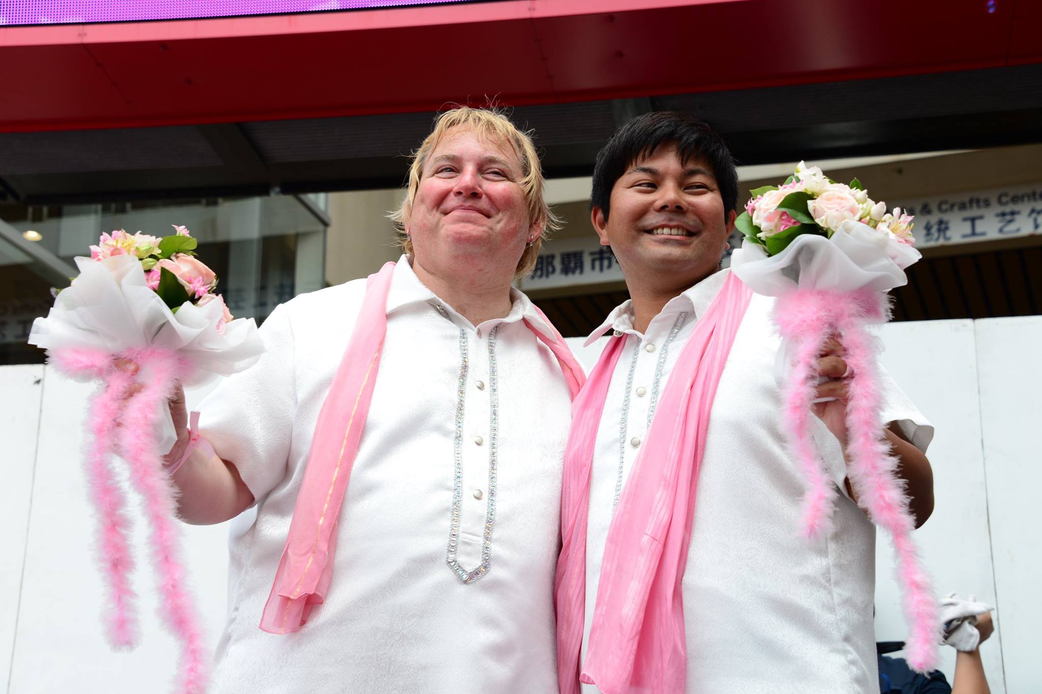 O momento mais esperado do evento foi o casamento de Kazuki e Harold, realizado no palco. Kazuki Kinjo, que hoje vive no Canadá com seu marido Harold, levou algum tempo até que sua mãe aceitasse seu relacionamento. No Pink Dot, eles contaram sua história e realizaram um casamento simbólico, numa tentativa de mudar o modo como a sociedade okinawana vê LGBTs e de dar esperança aos jovens que hoje enfrentam dificuldades com suas famílias, uma vez que o casamento homoafetivo não é reconhecido no Japão.