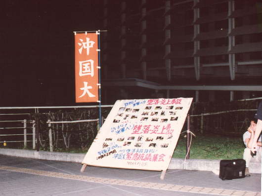 Protesto contra Ospreys e a Base de Futenma em frente à base e à prfeitura