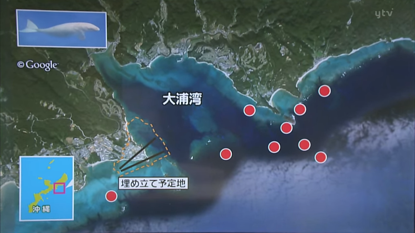 A construção da base militar americana em Henoko (cidade de Nago) tem gerado grande polêmica na sociedade okinawana, envolvendo também os governos japonês e norte-americano. Muitos cidadãos okinawanos se opõem à construção. Entre os motivos, está o fato de que Okinawa já abriga a maior parte das bases militares americanas em território japonês. Outro motivo é o meio ambiente – o projeto prevê o aterramento de parte da Baía de Oura (lê-se Oúra), que abriga várias espécies marinhas ameaçadas de extinção. Assim, nos protestos, em meio aos gritos de “No Base!”, eis que surge um personagem que deve ser protegido: o dugongo (“dugong”/ジュゴン em inglês e japonês). Afinal, o que é um dugongo?