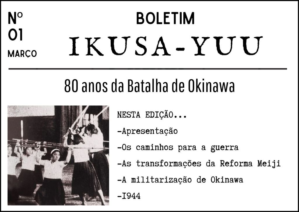 Em 2025, completam-se 80 anos da Batalha de Okinawa. Foi a única batalha corpo-a-corpo em território japonês e causou a morte de cerca de 1/3 da província. Até hoje, Okinawa sofre as consequências dessa tragédia. Dizem que a Batalha de Okinawa ainda não acabou. Durante as próximas semanas, acompanhe os principais eventos e episódios no Boletim Ikusa-yuu.