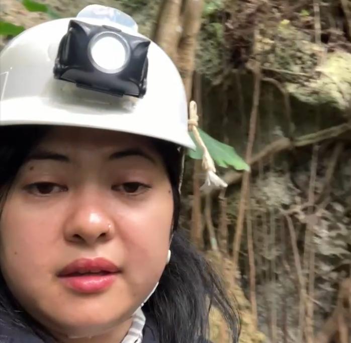 Subimos o morro com a natureza exuberante, que tinha uma vista belíssima para os mares do sul. Depois, descemos em direção às cavernas e aí eu entendi porque estávamos de luvas e capacete. Os caminhos eram bastante estreitos e íngremes.